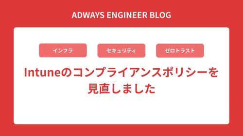 最近、「JuiceWRLD」と「サカナクション」にはまっております。 どうも、インフラ部門ヘルプデスクオペレーターのオカダです。 今回は、Intuneのデバイスコンプライアンスポリシーについて設定を見直した件について記事を書かせていただきたいと思います。 …