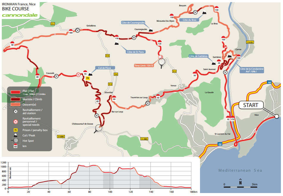 SWIM3.8km, BIKE180km, RUN42.2kmを制限時間内に完走するレース。