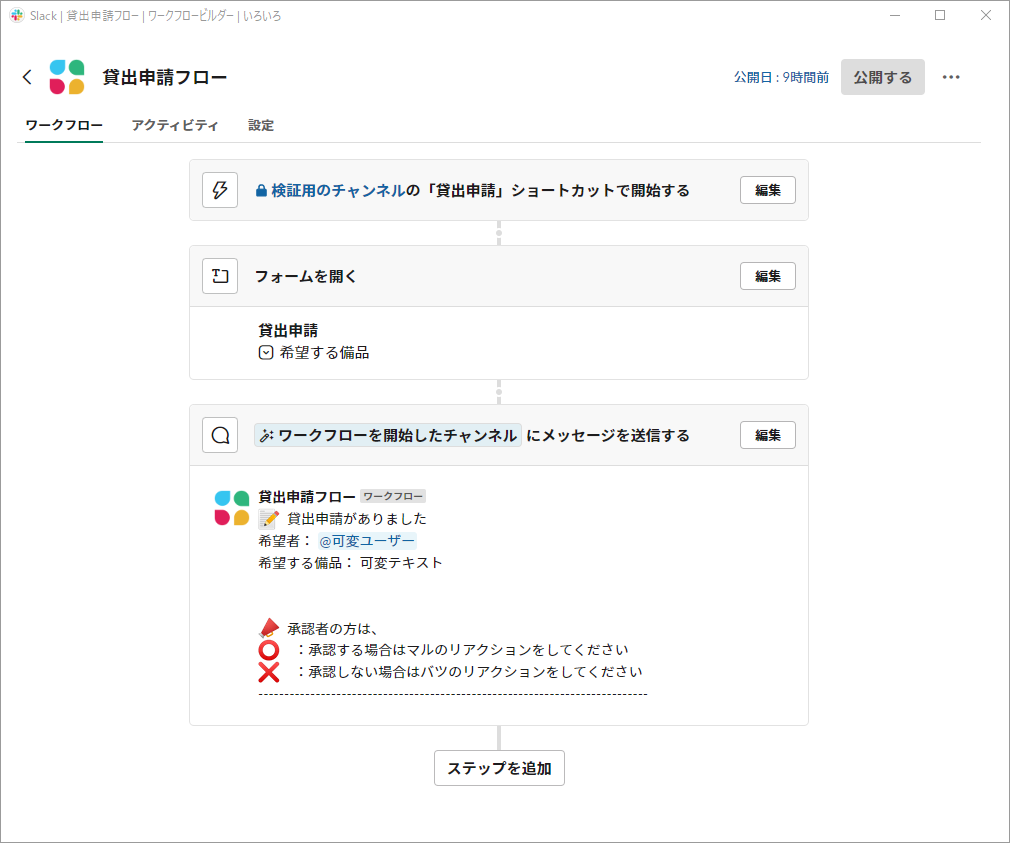 ワークフロービルダーの設定方法は前回の記事を参考にしていただければと思います!