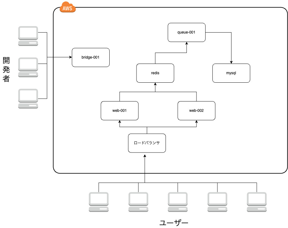 - 「queueとMySQLとRedisのセキュリティグループはまとめないほうがいいんじゃない?」