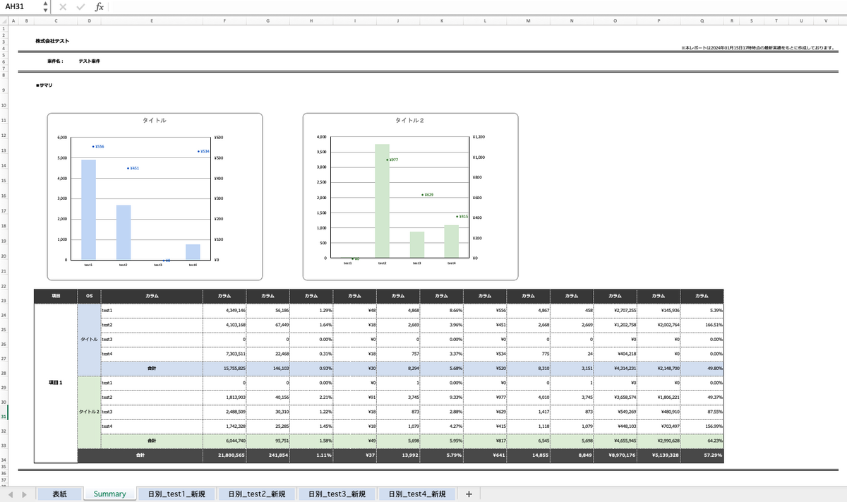 現状のレポート(Tableauで作成)と同等のものをExcelで表現する必要があり、いくつか工夫しながら作業を行いました。