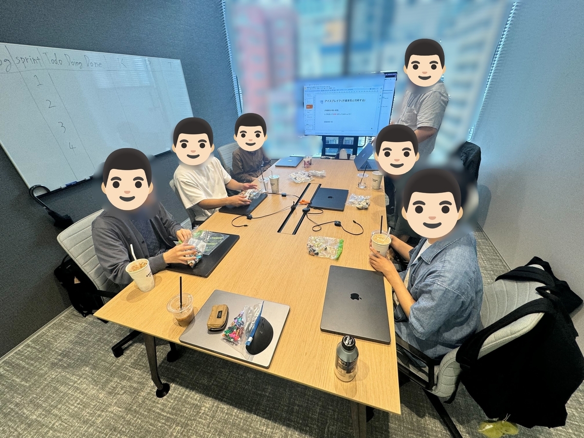 今年の新卒研修は大部分がリモートでの実施だったのですがこのスクラム研修はチーム間でのコミュニケーションが重要だと思ったので出社してもらい対面での実施となりました。