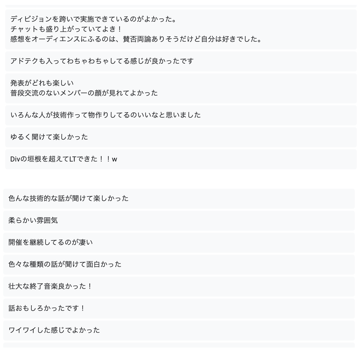 ひとこと:LT運営は大変な部分もあるけど、とても楽しいです。