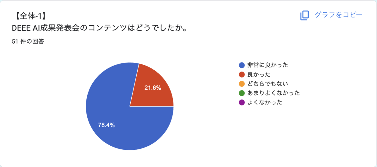 総合的にみて非常に良いイベントが開催できました。今後は業界的にも他組織や部署でもAI活用が活発化していくことは必須だと思います。