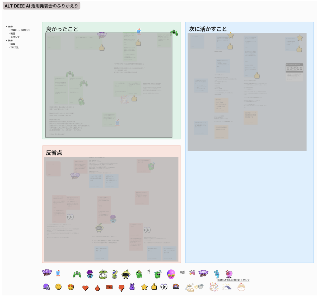 発表後、しばらくしてふりかえりを実施。 「しっかり学びを整理して、次に活かしたい」と考えていましたので、ふりかえり手法は simple is best 「KPT(Keep Problem Try)」 に決定しました。