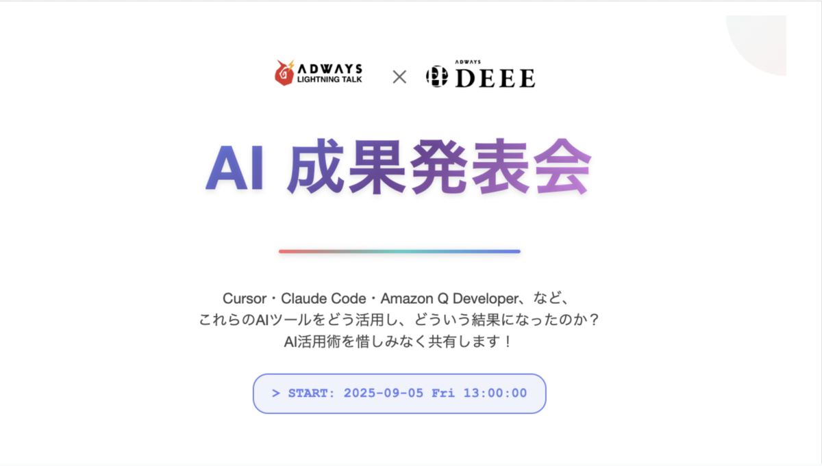 - 「ADWAYS LIGHTNING TALK × ADWAYS DEEE AI成果発表会」を実施。