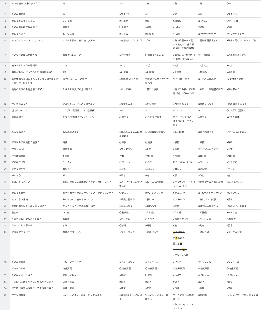 一番正解数が多かった人はクイズ◯◯(個人名)王として質問された側の当事者から一言もらって終わる取り組みになります。