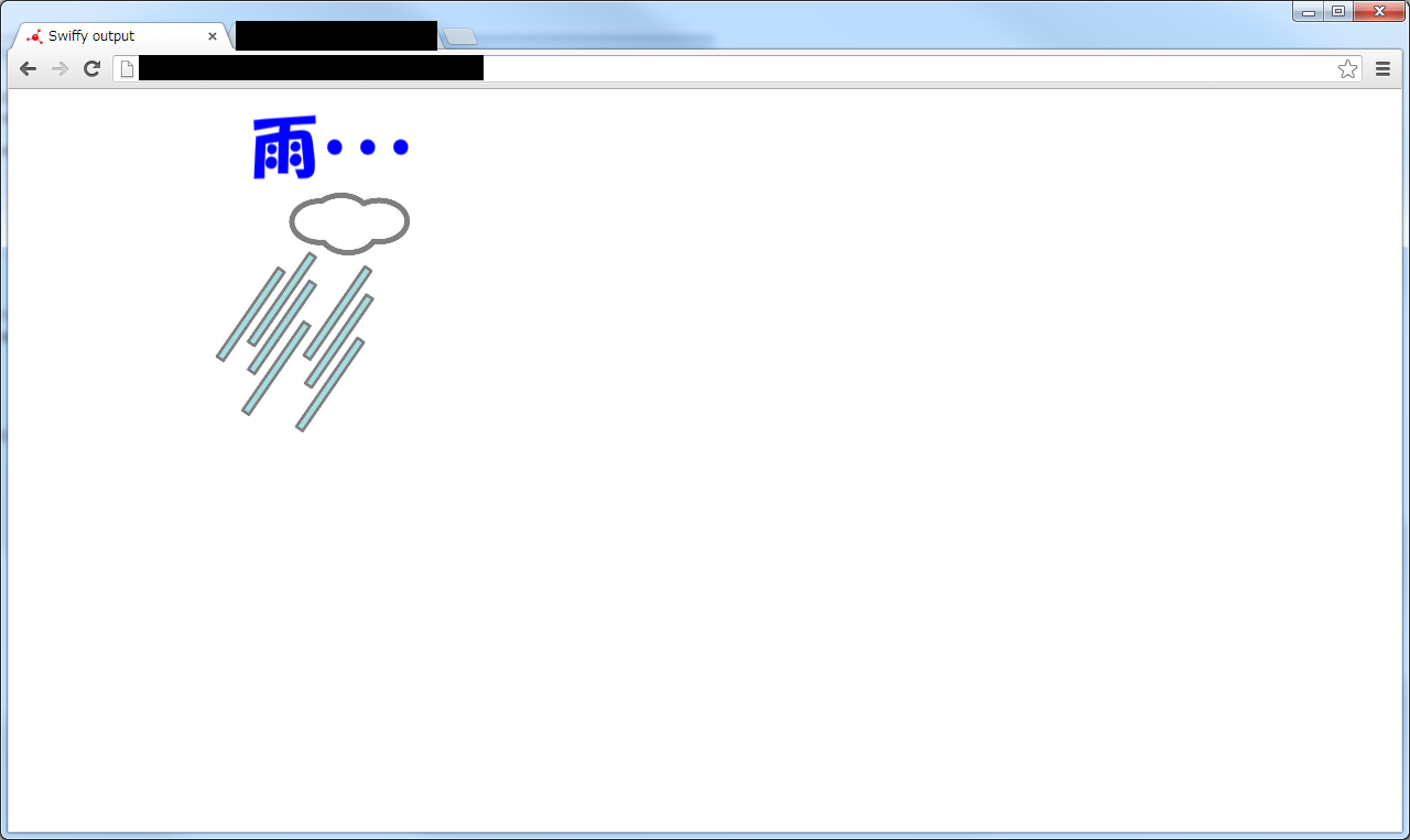 そのあと、Ajax通信で取得した値をもとに、次のように「晴れ!」か「雨...」を表示させます。Ajax通信で取得できる値は0~100のランダムな数字です。この値が0~50の場合は晴れを表示して、51以上は雨を出す感じですね。