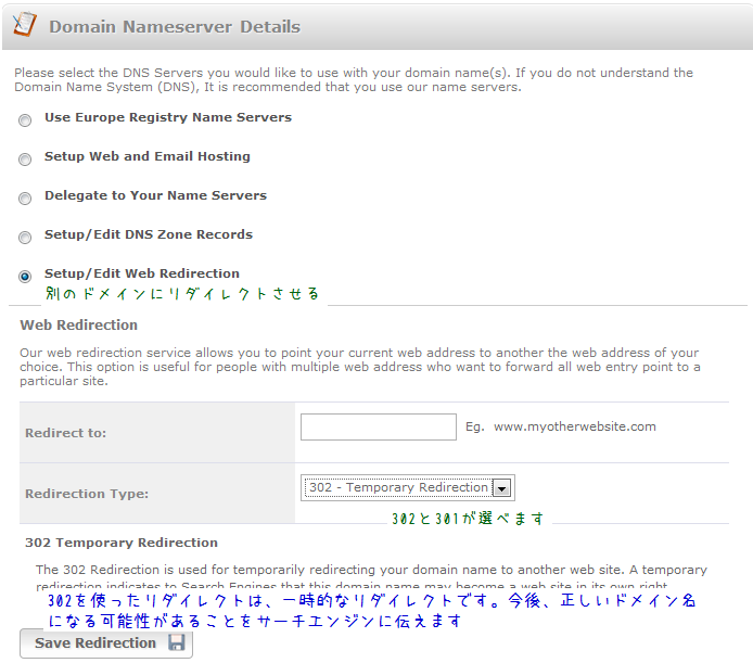 既に運用しているドメインへリダイレクトする場合に使えます。