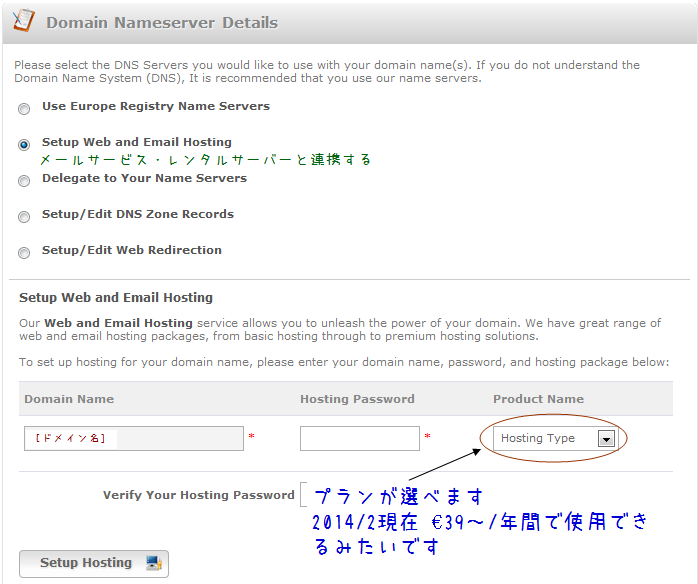 EuropeRegistry が提供するメールサービス、Webサーバーを使いたい場合はこちらを選びます。
