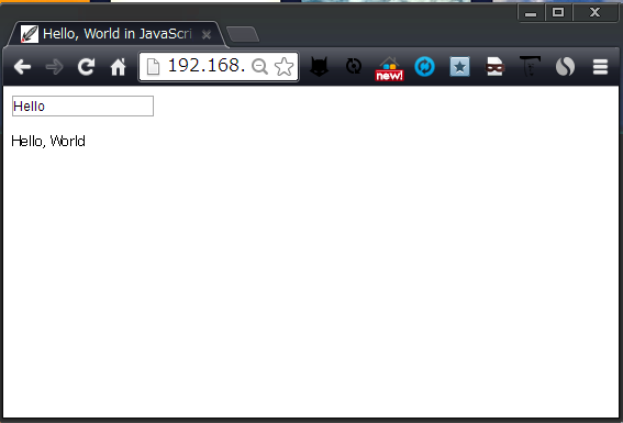 ここで入力フィールドに表示されているHelloをHiに書き換えると、入力フィールドに対してイベントリスナーなどの設定は何も行っていなくても、動的に更新されるUIをを作成できまます。- 依存性の注入
