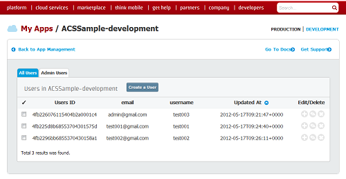 次にテストデータとしてACSの管理画面からユーザーを登録します。