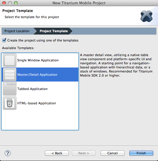 プロジェクト作成の際に「Project Template」を利用すると、Appceleratorが推奨する